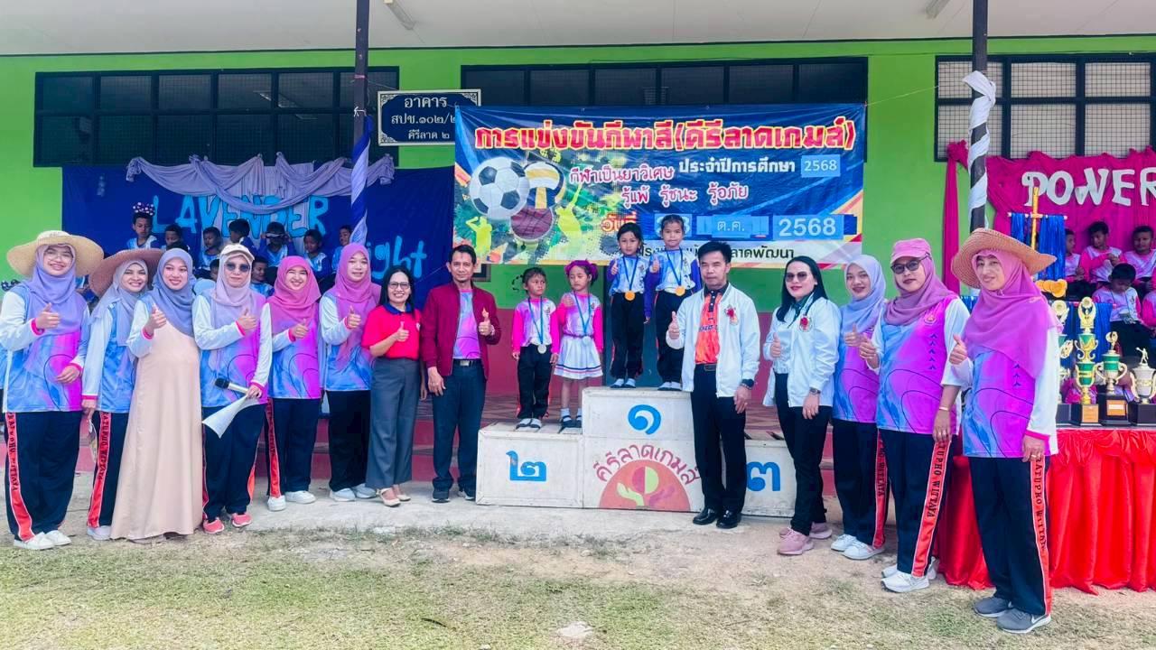 วันที่ 2 ตุลาคม 2568 นายลิขิต ศรีวริมย์ ผู้อำนวยการ สพป.ยะลา เขต 2 พร้อมด้วยนางสาวมลฤดี คำผุย รองผู้อำนวยการ สพป.ยะลา เขต 2 และนางพิศมัย ศรีวรมย์ ศึกษานิเทศก์ชำนาญการพิเศษ ร่วมเป็นเกียรติและมอบเหรียญรางวัลในกิจกรรมแข่งขันกีฬาภายในของโรงเรียนบ้านคีรีลาดพัฒนาและตรวจเยี่ยมเพื่อสร้างขวัญและกำลังใจกับผู้บริหาร คณะครูและบุคลากรในโรงเรียนด้านการบริหารจัดการในสถานศึกษาและแนวทางในการพัฒนาคุณภาพผู้เรียน ณ โรงเรียนบ้านคีรีลาดพัฒนา อำเภอบันนังสตา จังหวัดยะลา