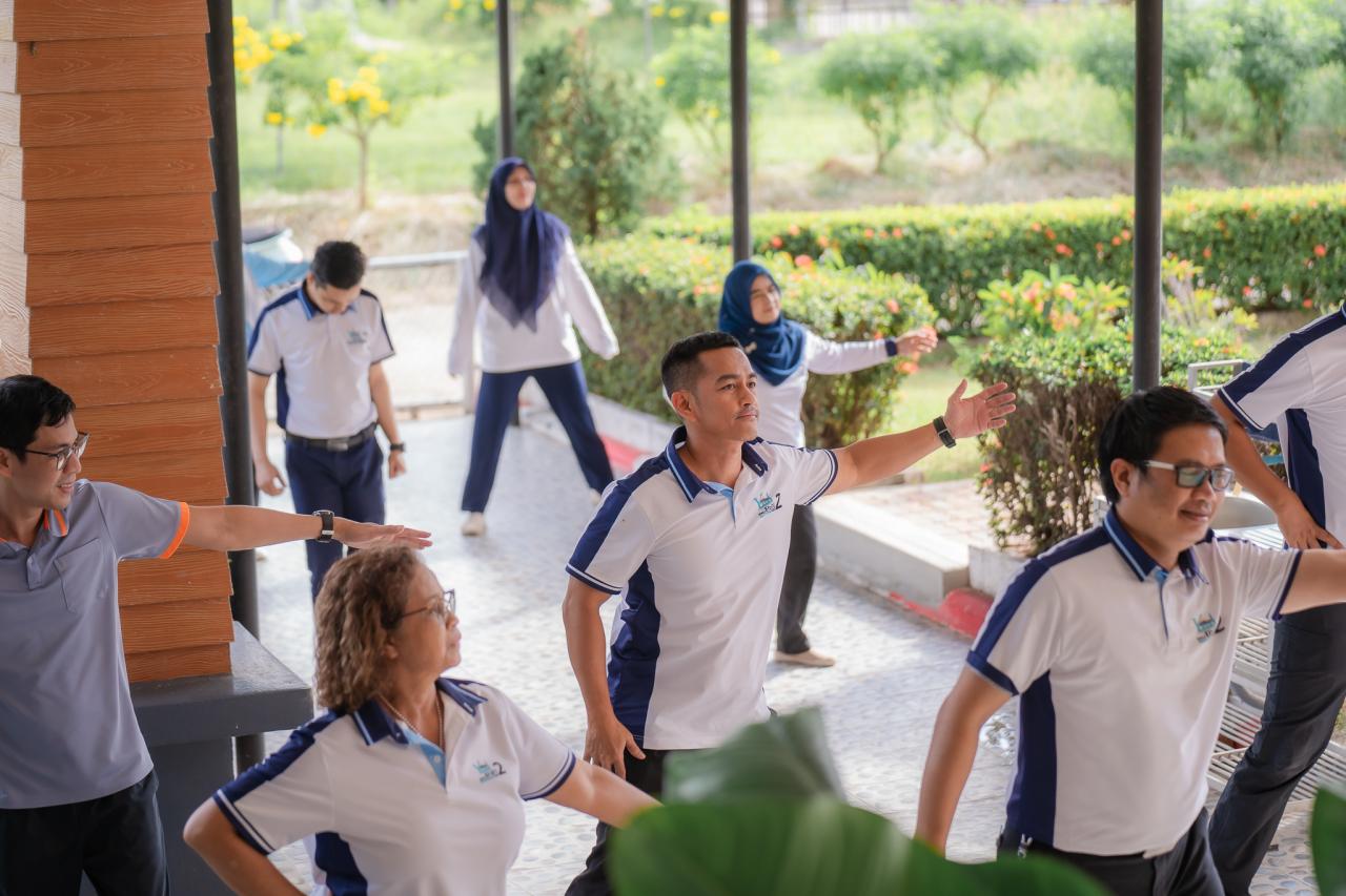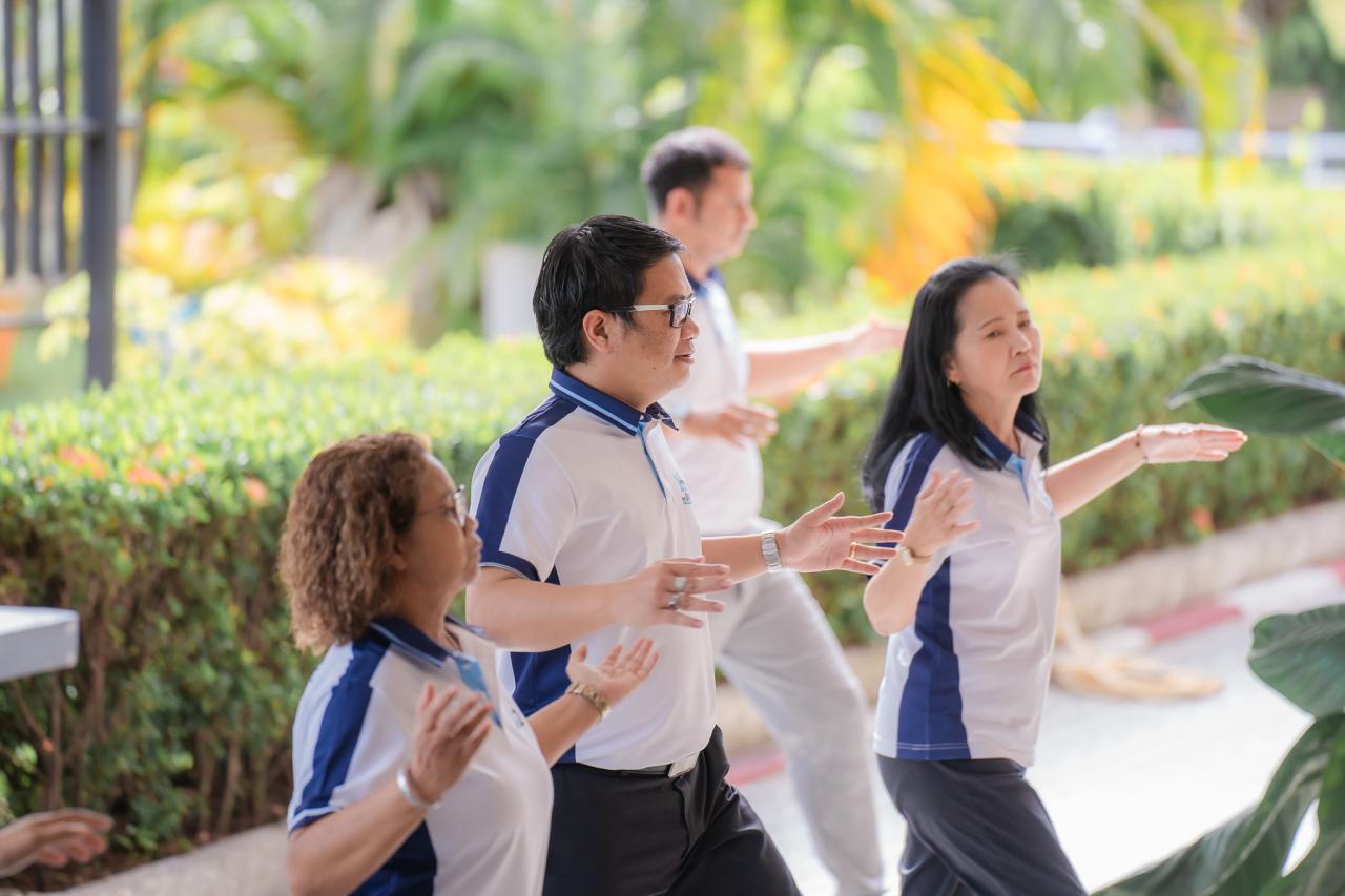 วันที่ 8 ตุลาคม 2568 ดร.สุรศักดิ์ เจตนา รองผู้อำนวยการสำนักงานเขตพื้นที่การศึกษาประถมศึกษา รักษาราชการแทนผู้อำนวยการสำนักงานเขตพื้นที่การศึกษาประถมศึกษายะลา เขต 2 นำทีมผู้อำนวยการกลุ่ม และบุคลากรในสังกัด ร่วมกิจกรรมออกกำลังกายประจำวันพุธ ซึ่งการออกกำลังกายในครั้งนี้จัดขึ้นอย่างต่อเนื่องทุกสัปดาห์ เพื่อส่งเสริมสุขภาพกายและใจให้แก่บุคลากร อีกทั้งยังเป็นการสร้างความสามัคคี ความสัมพันธ์อันดี และบรรยากาศที่ผ่อนคลายภายในองค์กร ณ ลานลีลาวดี สพป.ยะลา เขต 2 อำเภอบันนังสตา จังหวัดยะลา