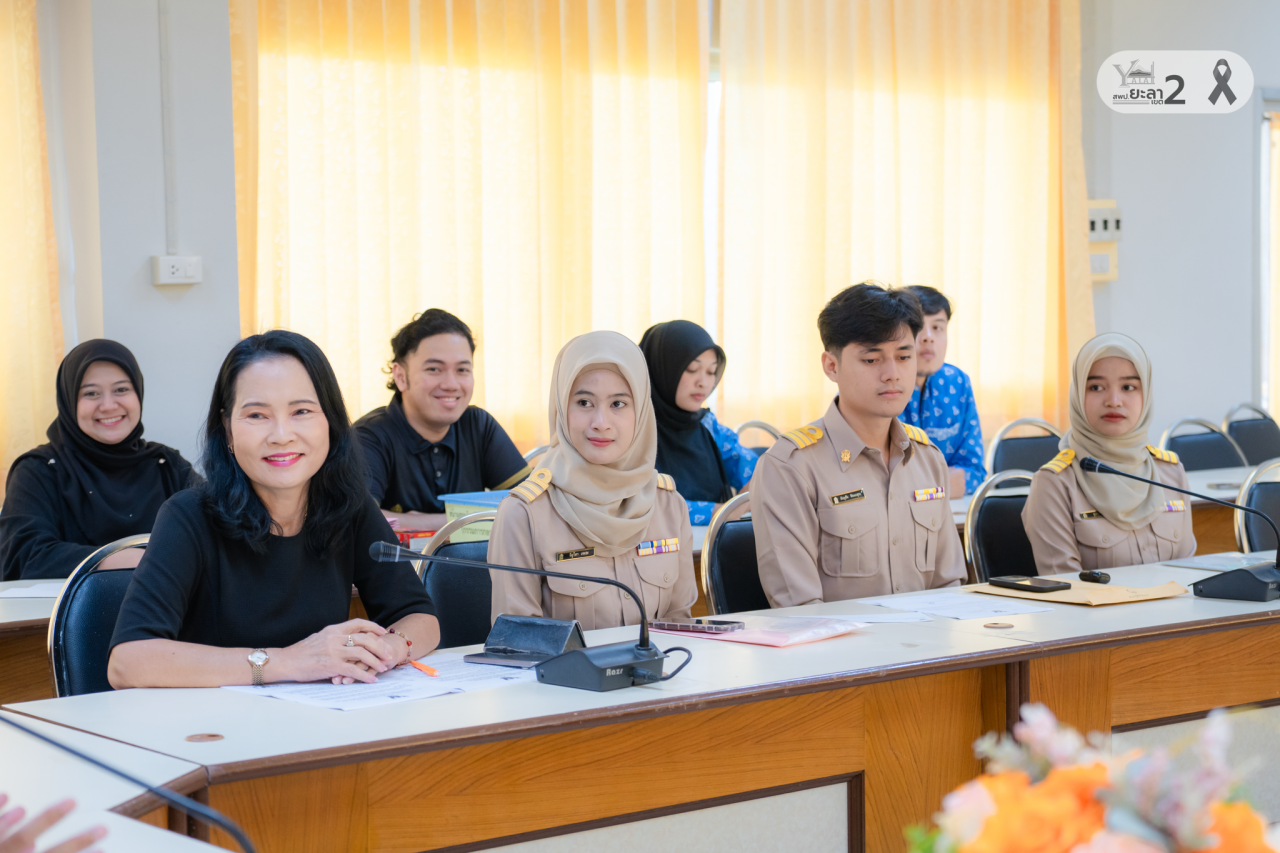 โดยมี ดร.วาทยุทธ พุทธพรหม และ นายวีรพันธ์ สานนท์ รองผู้อำนวยการ สพป.ยะลา เขต 2 ร่วมกับ นางธิดา พิศวง ผู้อำนวยการกลุ่มบริหารงานบุคคล ปฐมนิเทศและให้โอวาทแก่ครูผู้ช่วยรุ่นใหม่ เพื่อสร้างความเข้าใจในบทบาทหน้าที่ของครูมืออาชีพ ยึดมั่นในจรรยาบรรณวิชาชีพ และมุ่งมั่นพัฒนาคุณภาพการศึกษาของเยาวชนในพื้นที่ชายแดนใต้