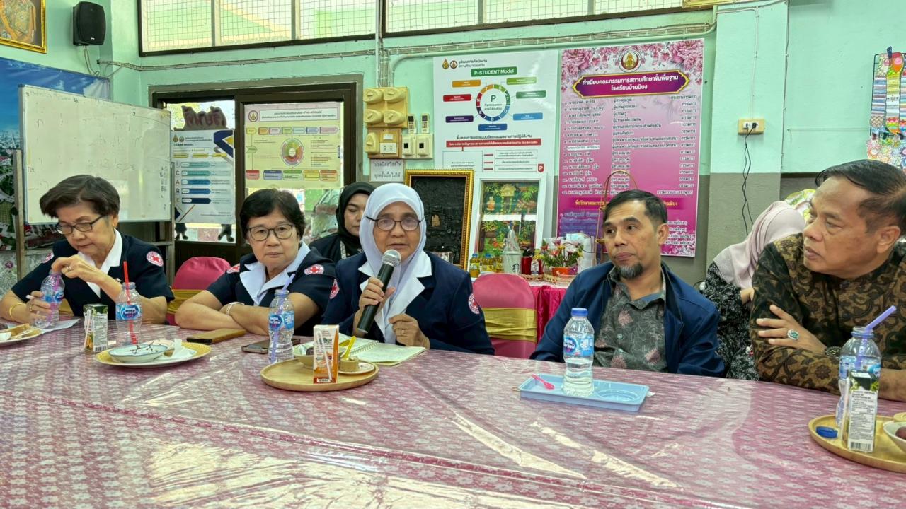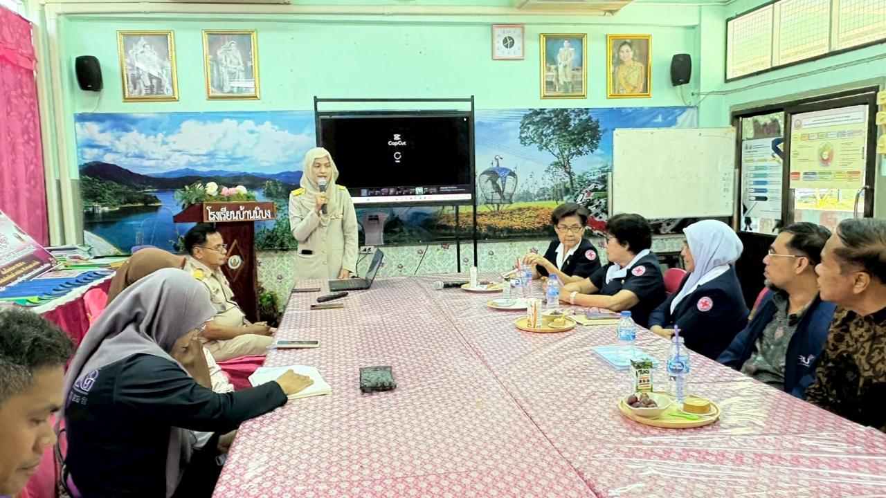 วันจันทร์ที่ 10 พฤศจิกายน 2568 เวลา 11.00 น. นางสาวนูรฮายาตี ทิวาสมาน ผู้อำนวยการโรงเรียนบ้านนิบง พร้อมด้วยนายอับดุลตอเล็บ วาเงาะ รองผู้อำนวยการโรงเรียนบ้านนิบง คณะครูและบุคลารกรทางการศึกษา ให้การต้อนรับคณะกรรมการเหล่ากาชาดจังหวัดยะลา และเจ้าหน้าที่บริหารงานทั่วไป ลงพื้นที่ติดตามตรวจเยี่ยมและเตรียมความพร้อมการขับเคลื่อนโครงการส่งเสริมและพัฒนาการพูด อ่าน เขียนภาษาไทย ประจำปีการศึกษา 2568 เพื่อพัฒนาทักษะด้านการอ่าน การเขียนภาษาไทยแก่เด็กนักเรียนชั้นประถมศึกษาปีที่ 1-6 ของโรงเรียนกลุ่มเป้าหมาย