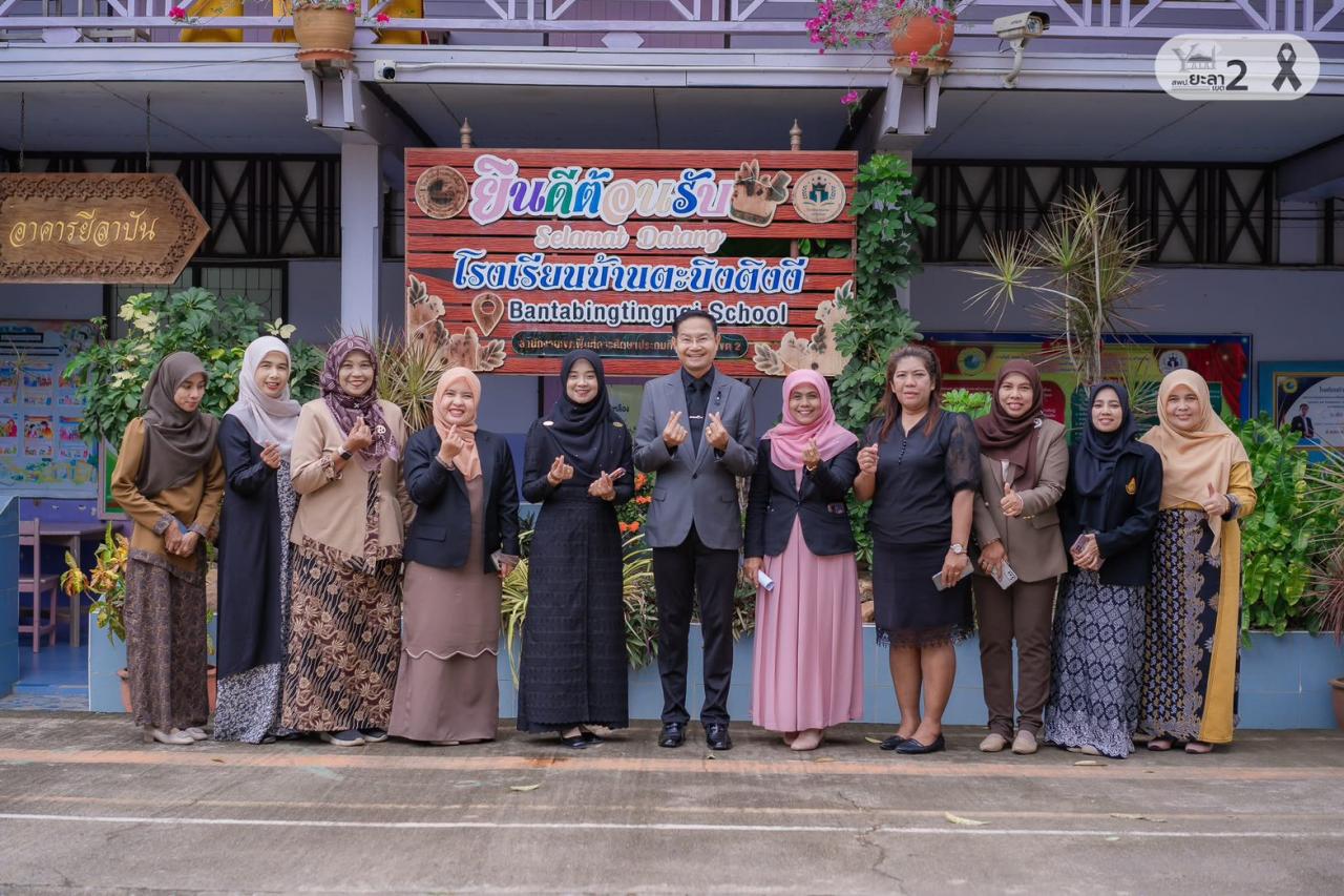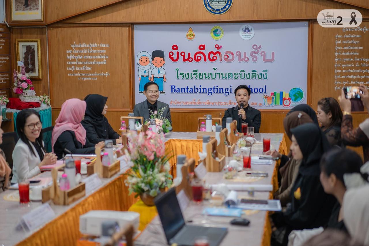 วันที่ 18 พฤศจิกายน 2568 นางฮายาตี มามะ ผู้อำนวยการโรงเรียนบ้านตะบิงติงงี พร้อมด้วย นางสาวนูรฟาฏีมะฮ์ สะดียามู รองผู้อำนวยการโรงเรียนบ้านตะบิงติงงี และคณะครูโรงเรียนบ้านตะบิงติงงี ร่วมให้การต้อนรับ นายลิขิต ศรีวรมย์ ผู้อำนวยการสำนักงานเขตพื้นที่การศึกษาประถมศึกษายะลา เขต 2 นายวาทยุทธ พุทธพรหม รองผู้อำนวยการสำนักงานเขตพื้นที่การศึกษาประถมศึกษายะลา เขต 2 พร้อมด้วยคณะกรรมการตรวจเยี่ยมความพร้อมในการเปิดภาคเรียนที่ 2 ปีการศึกษา 2568 ได้ลงพื้นที่ตรวจเยี่ยมการจัดการเรียนการสอนและสภาพแวดล้อมการเรียนรู้ รวมถึงความพร้อมของครูและนักเรียน เพื่อเตรียมความพร้อมในการเปิดภาคเรียนที่ 2 ปีการศึกษา 2568 และให้กำลังใจแก่ผู้บริหาร คณะครู และนักเรียนของโรงเรียนบ้านตะบิงติงงี