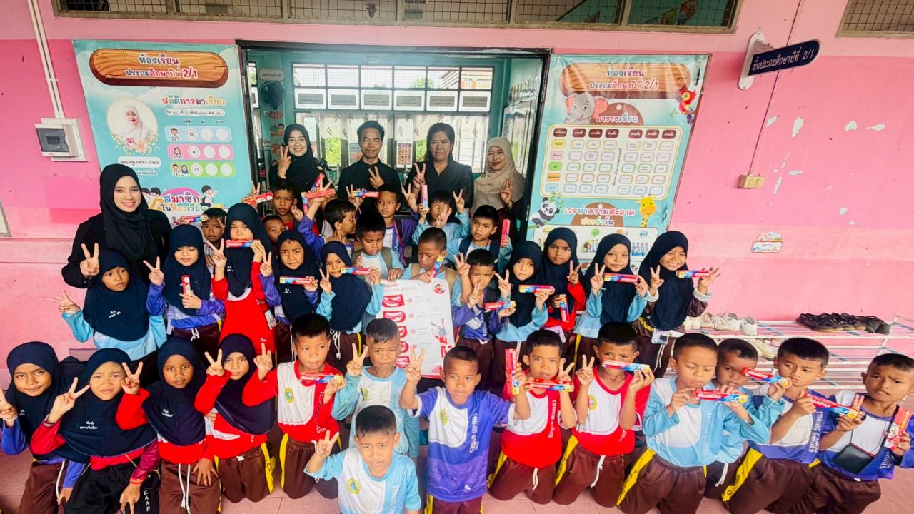 พร้อมทั้งมอบยาสีฟันคอลเกต ให้แก่นักเรียนชั้นประถมศึกษาปีที่ 2 เพื่อส่งเสริมสุขภาพฟันที่ดี และมอบโปสเตอร์แปรงฟันอย่างถูกวิธีให้โรงเรียนเพื่อใช้เป็นสื่อประกอบการเรียนรู้ด้านสุขอนามัยช่องปาก