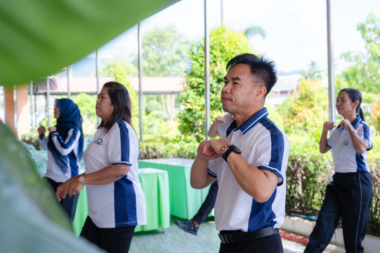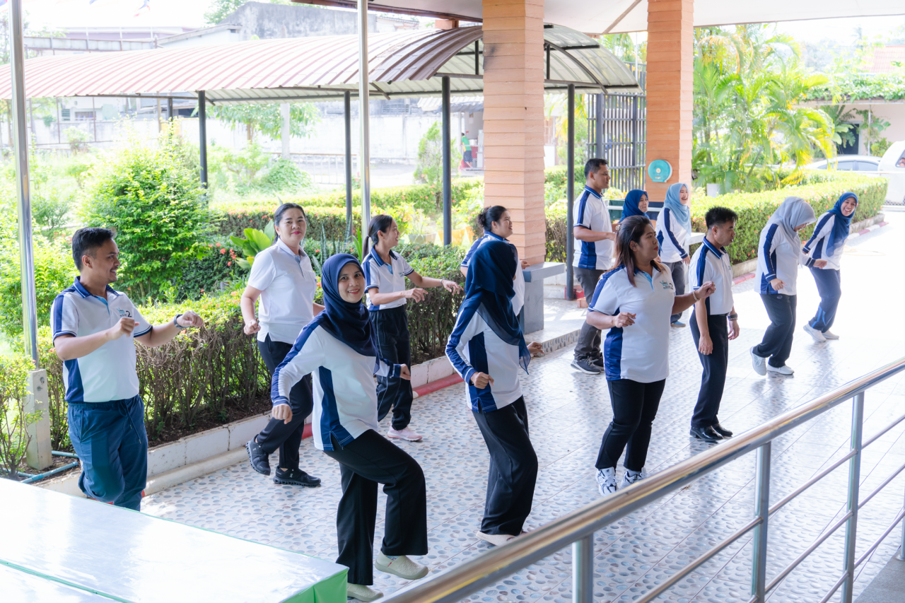 วันที่ 10 กันยายน 2568 สำนักงานเขตพื้นที่การศึกษาประถมศึกษายะลา เขต 2 จัดกิจกรรมออกกำลังกายทุกวันพุธ ณ ลานลีลาวดี สพป.ยะลา เขต 2 อำเภอบันนังสตา จังหวัดยะลา โดยมีนายลิขิต ศรีวริมย์ ผู้อำนวยการ สพป.ยะลา เขต 2 นำทีมผู้อำนวยการกลุ่ม และบุคลากรในสังกัด เข้าร่วมกิจกรรมออกกำลังกายร่วมกัน ซึ่งการออกกำลังกายในครั้งนี้จัดขึ้นอย่างต่อเนื่องทุกสัปดาห์ เพื่อส่งเสริมสุขภาพกายและใจให้แก่บุคลากร อีกทั้งยังเป็นการสร้างความสามัคคี ความสัมพันธ์อันดี และบรรยากาศที่ผ่อนคลายภายในองค์กร