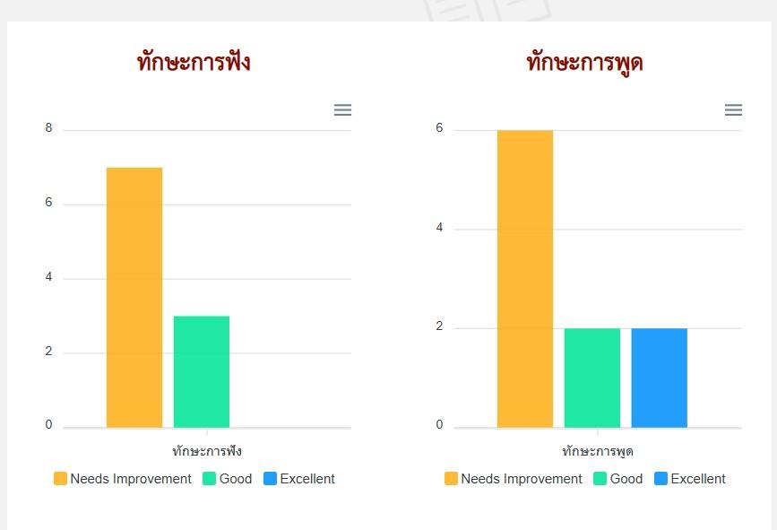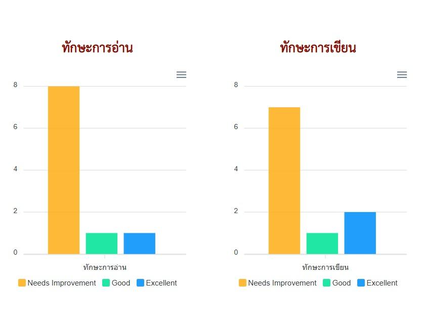 ในการทดสอบครั้งนี้เป็นการทดสอบในระดับ A1 เพื่อเป็นการเริ่มต้น นักเรียนที่เข้าสอบมีจำนวนทั้งสิ้น 10 คน ผลของการทดสอบ มีนักเรียนที่ผ่านได้คะแนนอยู่ในระดับ A1 (good) จำนวน 4 คน และต้องปรับปรุง จำนวน 6 คน