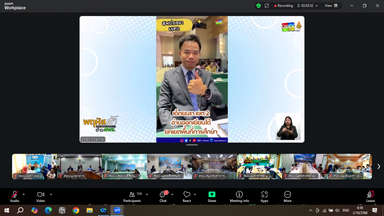 วันที่ 2 ตุลาคม 2568 นายลิขิต ศรีวรมย์ ผู้อำนวยการ สพป.ยะลา เขต 2 มอบหมายให้ ดร.สุรศักดิ์ เจตนา รองผู้อำนวยการ สพป.ยะลา เขต 2 พร้อมด้วยนางสาวสอพูรอ หะยีเจะปูเตะ ผู้อำนวยการกลุ่มนิเทศ ติดตามและประเมินผลการจัดการศึกษา นางรอกีเย๊าะ เจ๊ะมะ ศึกษานิเทศก์ชำนาญการพิเศษ นางรอสีเยาะ มะแอ ศึกษานิเทศก์ชำนาญการพิเศษ นางเฉลียวศาสตร์ นุ้ยสมัน ศึกษานิเทศก์ชำนาญการพิเศษ นางสาวอาอีด๊ะห์ หะยีดาแม ศึกษานิเทศก์ชำนาญการพิเศษ นางสาวดาลีณีย์ กาเจ ศึกษานิเทศก์ชำนาญการพิเศษ และนายสักรี เจะดอเลาะ พนักงานราชการ ร่วมรับชมรายการพฤหัสเช้า ข่าวสพฐ. ครั้งที่ 39/2568 ประจำวันพฤหัสบดีที่ 2 ตุลาคม 2568 ณ ห้องประชุมยีลาปัน สพป.ยะลา เขต 2 อำเภอบันนังสตา จังหวัดยะลา เพื่อรับทราบข้อมูลข่าวสาร ข้อราชการ ตลอดจนนโยบายการจัดการศึกษาจากสำนักงานคณะกรรมการการศึกษาขั้นพื้นฐาน (สพฐ.) เพื่อนำไปสู่การขับเคลื่อนการปฏิบัติงานในพื้นที่ได้อย่างมีประสิทธิภาพ
