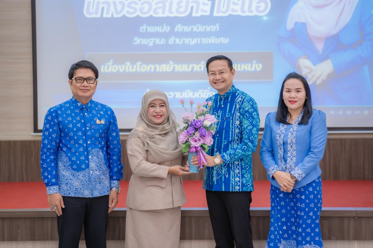 วันที่ 3 ต.ค. 2568 นายลิขิต ศรีวริมย์ ผู้อำนวยการ สพป.ยะลา เขต 2 มอบหมายให้ ดร.วาทยุทธ พุทธพรหม ,ดร.สุรศักดิ์ เจตนา ,นางสาวมลฤดี คำผุย รองผู้อำนวยการ สพป.ยะลา เขต 2 พร้อมด้วยผู้อำนวยการกลุ่ม/หน่วย และบุคลากร สพป.ยะลา เขต 2 ร่วมแสดงความยินดีกับ นางรอสีเยาะ มะแอ ศึกษานิเทศก์ชำนาญการพิเศษ ในโอกาสย้ายไปปฏิบัติหน้าที่ศึกษานิเทศก์ สังกัดสำนักงานเขตพื้นที่การศึกษาประถมศึกษายะลา เขต 1 โดยมีนายเชาวลิต เพ็ชรหวล รองผู้อำนวยการ สพป.ยะลา เขต 1 รักษาราชการแทนผู้อำนวยการ สพป.ยะลา เขต 1 คณะศึกษานิเทศก์ และบุคลากร สพป.ยะลา เขต 1 ให้การต้อนรับและร่วมแสดงความยินดี ณ ห้องประชุมรายา สพป.ยะลา เขต 1