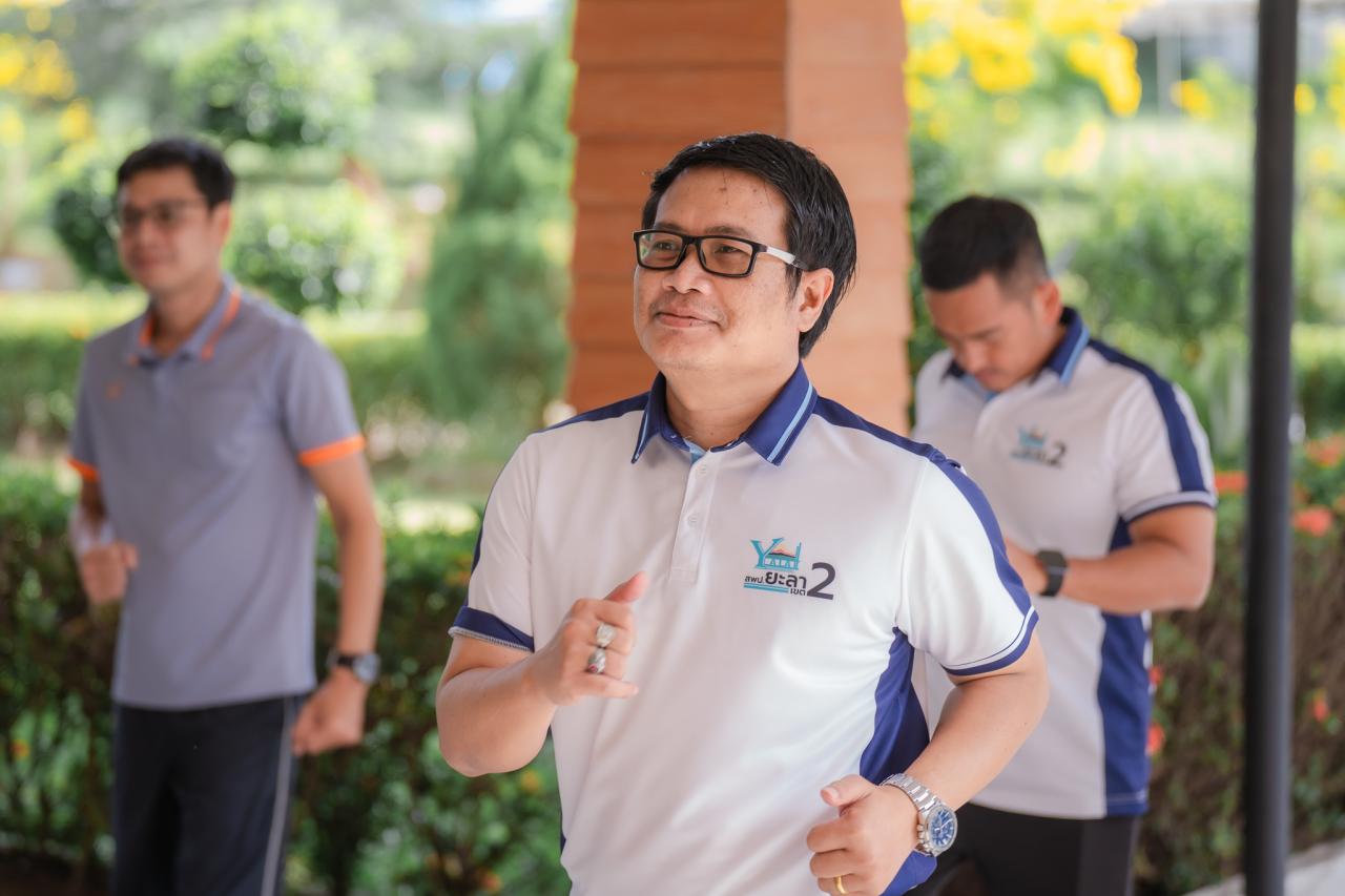 วันที่ 8 ตุลาคม 2568 ดร.สุรศักดิ์ เจตนา รองผู้อำนวยการสำนักงานเขตพื้นที่การศึกษาประถมศึกษา รักษาราชการแทนผู้อำนวยการสำนักงานเขตพื้นที่การศึกษาประถมศึกษายะลา เขต 2 นำทีมผู้อำนวยการกลุ่ม และบุคลากรในสังกัด ร่วมกิจกรรมออกกำลังกายประจำวันพุธ ซึ่งการออกกำลังกายในครั้งนี้จัดขึ้นอย่างต่อเนื่องทุกสัปดาห์ เพื่อส่งเสริมสุขภาพกายและใจให้แก่บุคลากร อีกทั้งยังเป็นการสร้างความสามัคคี ความสัมพันธ์อันดี และบรรยากาศที่ผ่อนคลายภายในองค์กร ณ ลานลีลาวดี สพป.ยะลา เขต 2 อำเภอบันนังสตา จังหวัดยะลา