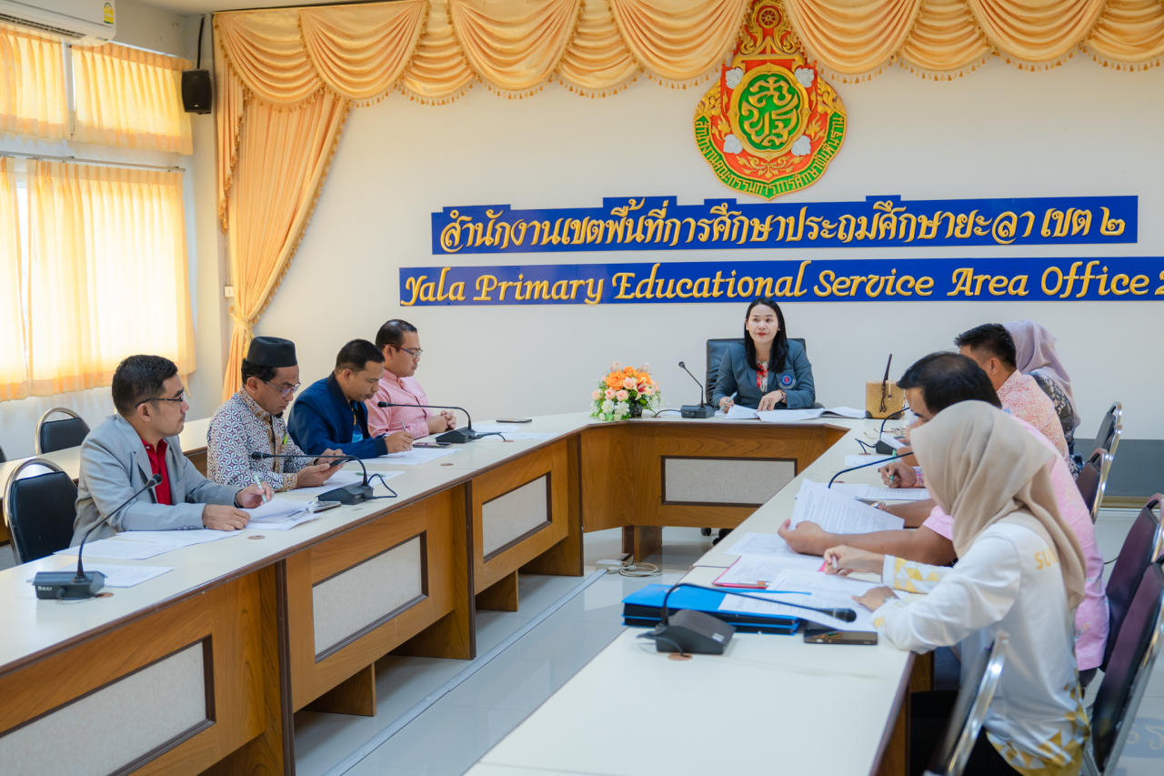 วันที่ 14 ตุลาคม 2568 นายลิขิต ศรีวรมย์ ผู้อำนวยการ สพป.ยะลา เขต 2 มอบหมายให้นางสาวมลฤดี คำผุย รองผู้อำนวยการ สพป.ยะลา เขต 2 เป็นประธานการประชุมคณะกรรมการคัดเลือกจัดเรียงลำดับโรงเรียนที่มีความต้องการระบบคอมพิวเตอร์พร้อมอุปกรณ์สำหรับการเรียนการสอน ประจำปีงบประมาณ พ.ศ. 2570 ครั้งที่ 1/2568 ณ ห้องประชุมยีลาปัน สพป.ยะลา เขต 2 อำเภอบันนังสตา จังหวัดยะลา