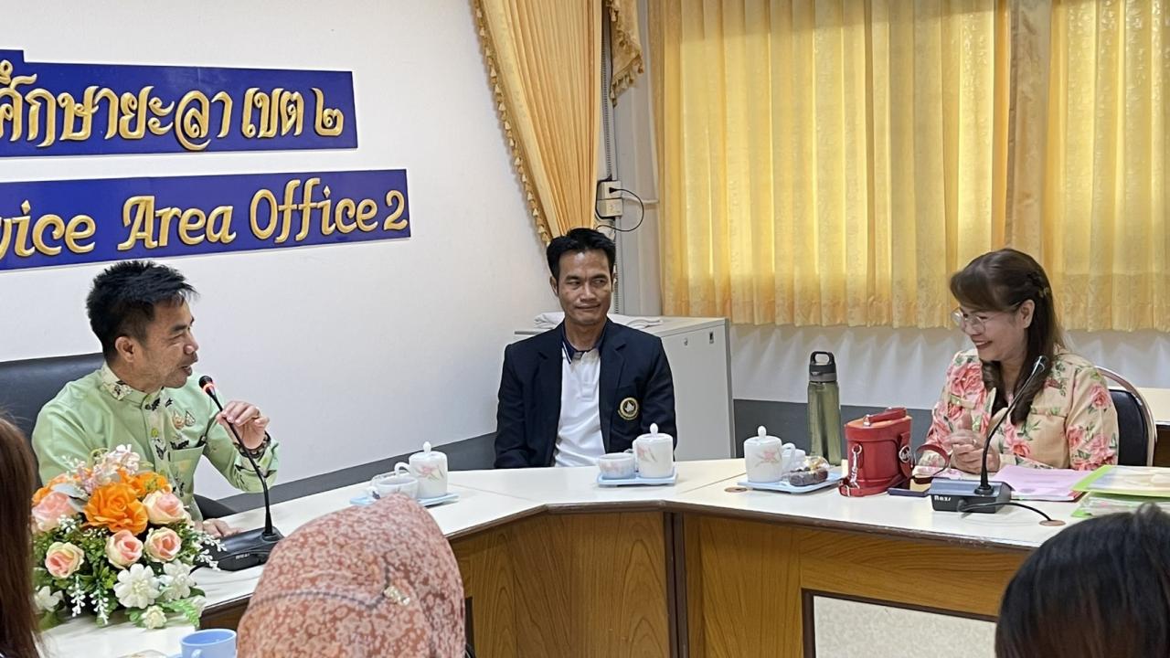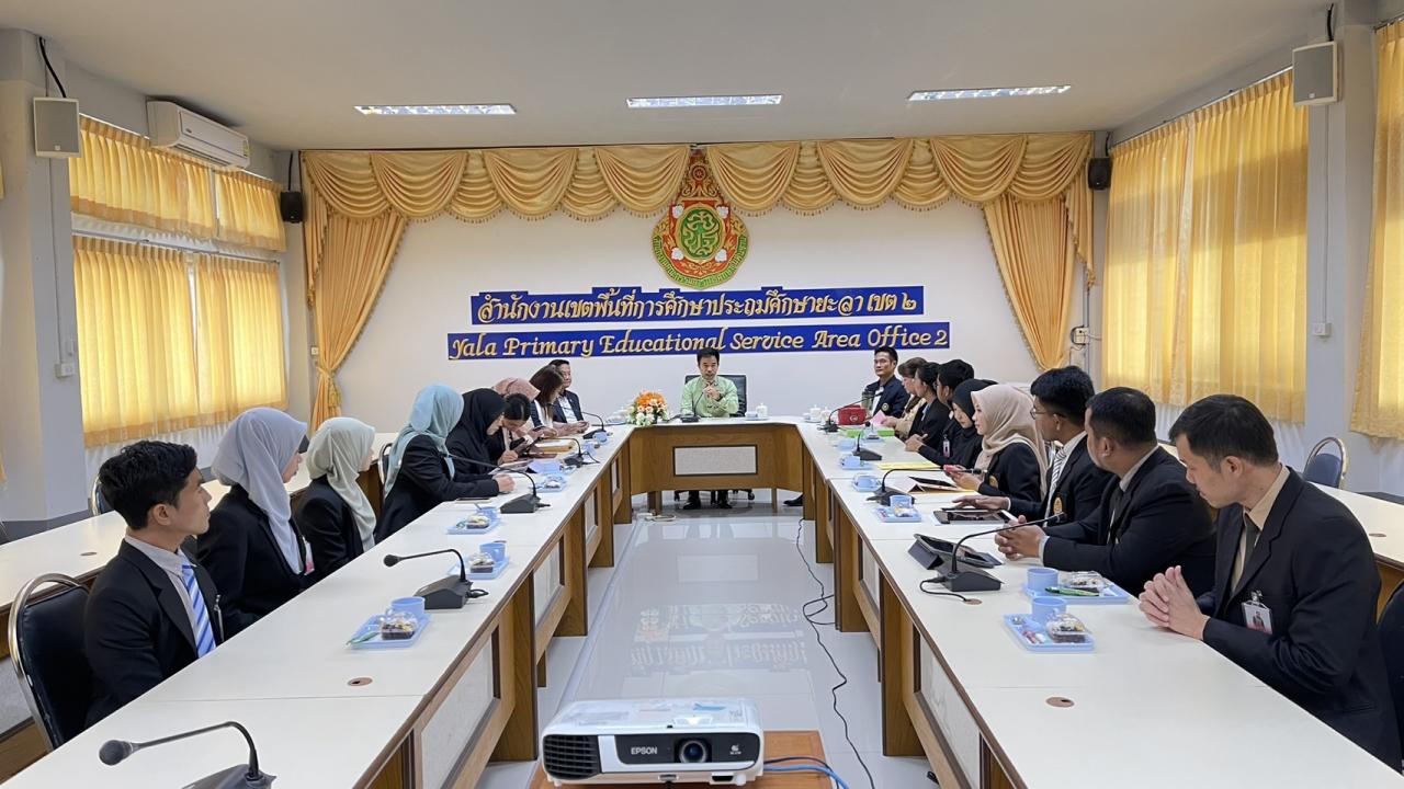 วันที่ 22 ตุลาคม 2568 นายลิขิต ศรีวรมย์ ผู้อำนวยการ สพป.ยะลา เขต 2 พร้อมด้วย ดร.วาทยุทธ พุทธพรหม นายวีรพันธ์ สานนท์ รองผู้อำนวยการ สพป.ยะลา เขต 2 และนางธัญลักษณ์ ชูประศรี ผู้อำนวยการกลุ่มอำนวยการ ร่วมให้การต้อนรับ รองศาสตราจารย์ ดร.จรุณี เก้าเอี้ยน ประธานหลักสูตรครุศาสตรมหาบัณฑิต สาขาวิชาการบริหารการศึกษา มหาวิทยาลัยราชภัฏยะลา ณ ห้องประชุมยีลาปัน สพป.ยะลา เขต 2 อำเภอบันนังสตา จังหวัดยะลา