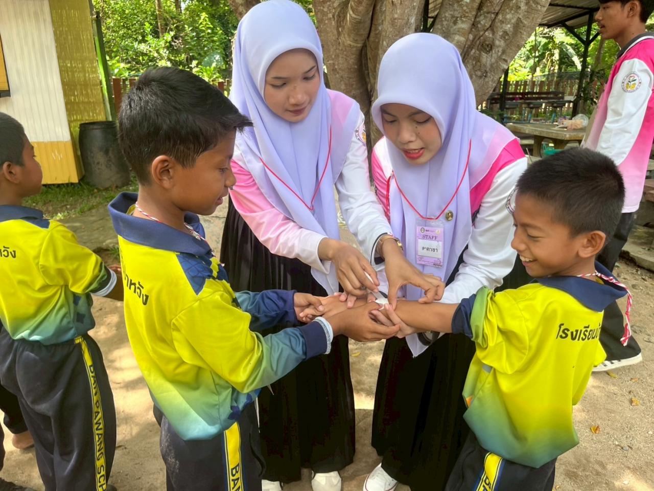 วันที่ 11 กันยายน 2568 นางสาวภัทรนรินทร์ โรจน์ศิริตระกูล ผู้อำนวยการโรงเรียนบ้านป่าหวังได้ต้อนรับนักศึกษาจากมหาวิทยาลัยราชภัฎยะลา จำนวน ๔๐ คน เพื่อดำเนินการจัดกิจกรรมการปฐมพยาบาลเบื้องต้นให้กับนักเรียนระดับชั้นประถมศึกษาปีที่ ๔ - ๖ โดยมีกิจกรรมการให้ความรู้เกี่ยวกับการปฐมพยาบาลเบื้องต้นตามฐานต่าง ๆ จำนวน ๕ ฐาน