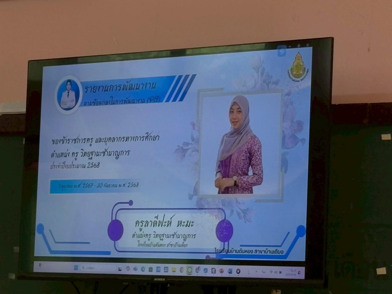 วัน จันทร์ ที่ 29 กันยายน พ.ศ. 2568 โรงเรียนบ้านตันหยง สาขาบ้านเตียง ได้ดำเนินการจัดการประเมินผลการพัฒนางานตามข้อตกลงในการพัฒนางาน (Performance Agreement : PA) ของข้าราชการครูและบุคลากรทางการศึกษา โดยได้รับเกียรติจากคณะกรรมการผู้ทรงคุณวุฒิ ประกอบด้วย